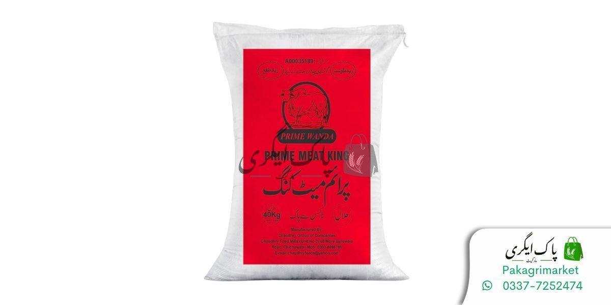 پرائم میٹ کنگ ونڈا ایک اعلیٰ معیار کا متوازن جانوروں کا چارہ ہے، جو گوشت دینے والے جانوروں (بیف کیٹل) کی بہتر نشوونما، تیزی سے وزن بڑھانے، اور مجموعی صحت کو بہتر بنانے کے لیے تیار کیا گیا ہے۔ یہ پروٹین، توانائی، وٹامنز اور منرلز سے بھرپور ہوتا ہے، جو جانور کی روزمرہ ضروریات کو پورا کرتا ہے اور تجارتی گوشت کی پیداوار کو بڑھاتا ہے۔