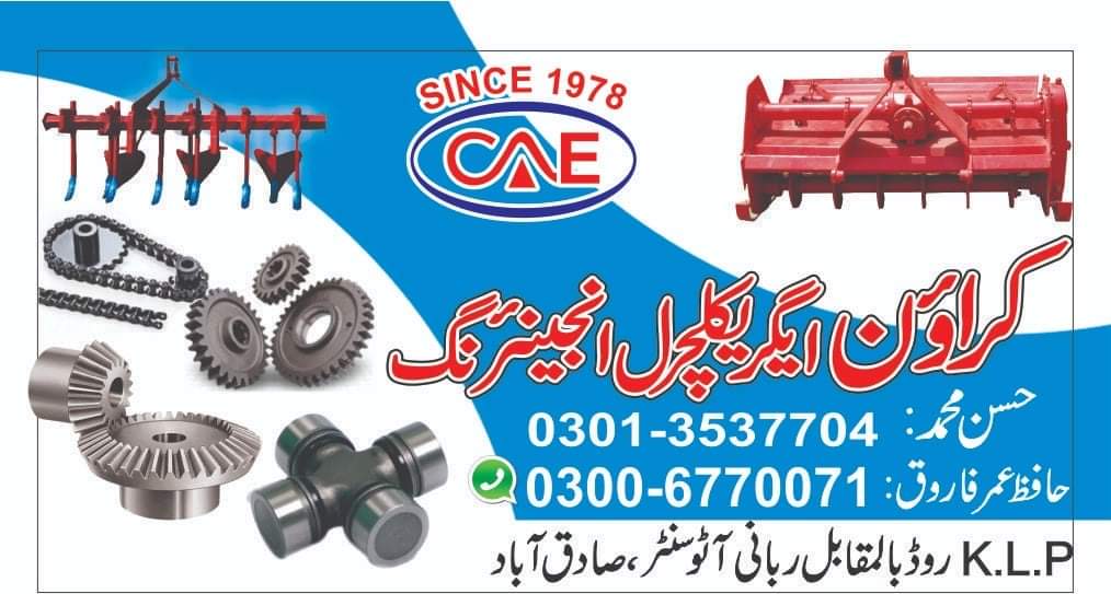 روٹا ویٹر، تھریشر، کاٹن، ڈرل، ریجر، کھاد، بوم سپرے...