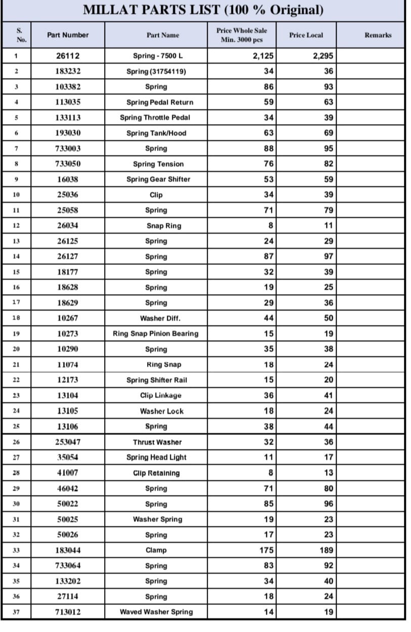 ملت میسی ٹریکٹر سپیئر پارٹس