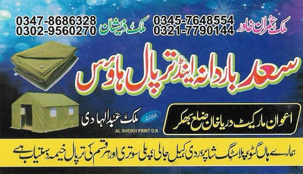 یہاں ہمہ قسم نیاو پرانہ باردانہ نیز ٹنل کا سامان،جال...